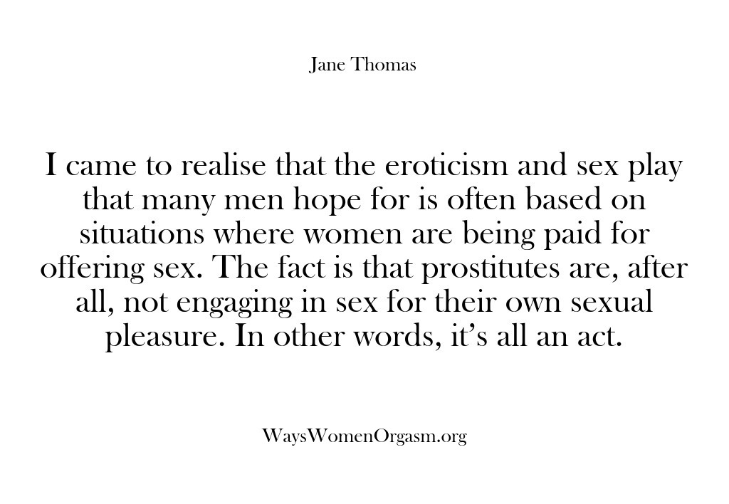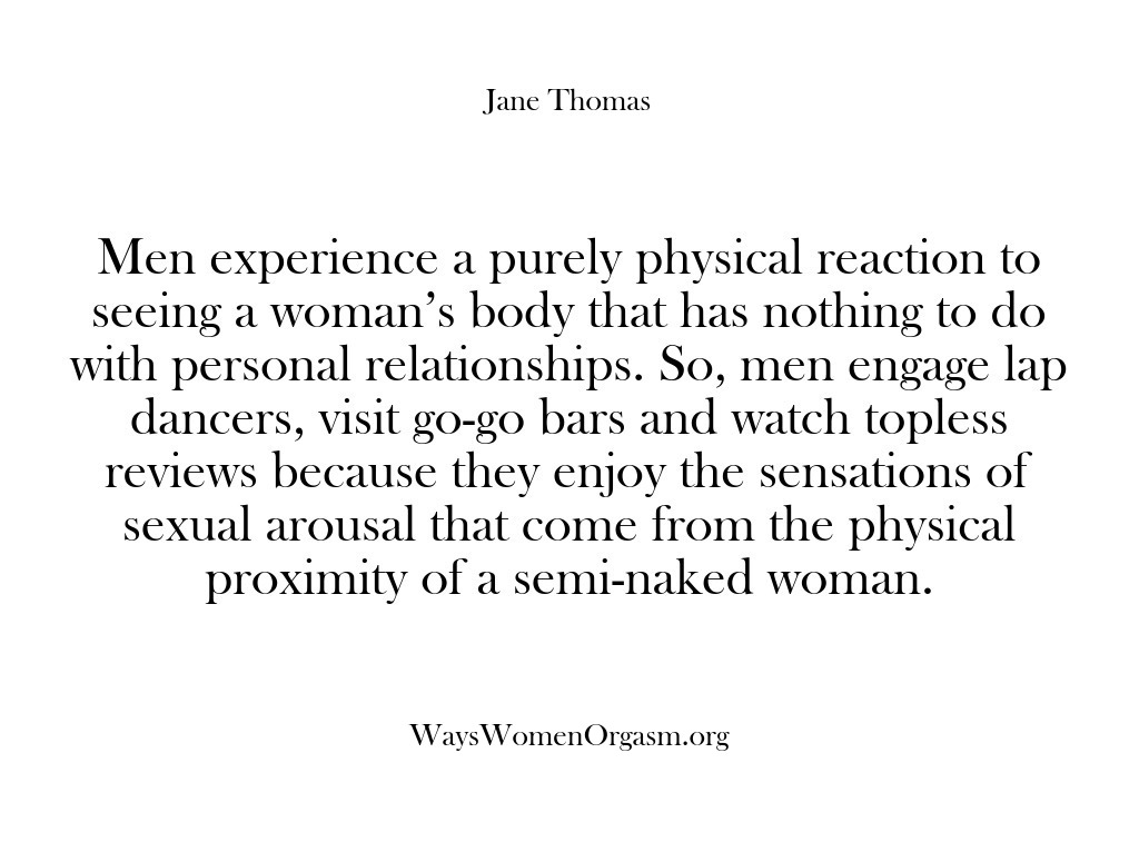 Anyone, who has orgasms, can explain explicitly how they achieve them. Jane asks women to explain the turn-ons, the anatomy and the stimulation technique involved to differentiate between sexual response and emotional rewards with a lover.