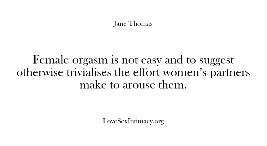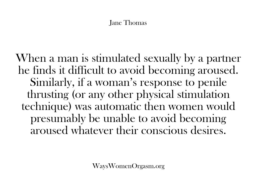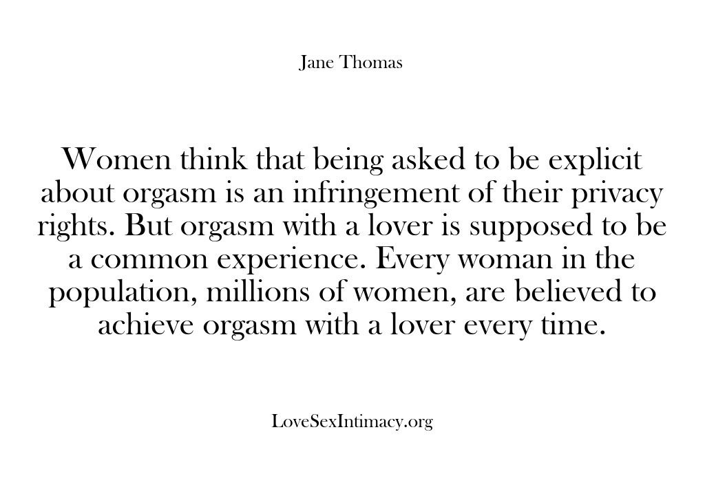 Anyone, who has orgasms, can explain explicitly how they achieve them. Jane asks women to explain the turn-ons, the anatomy and the stimulation technique involved to differentiate between sexual response and emotional rewards with a lover.