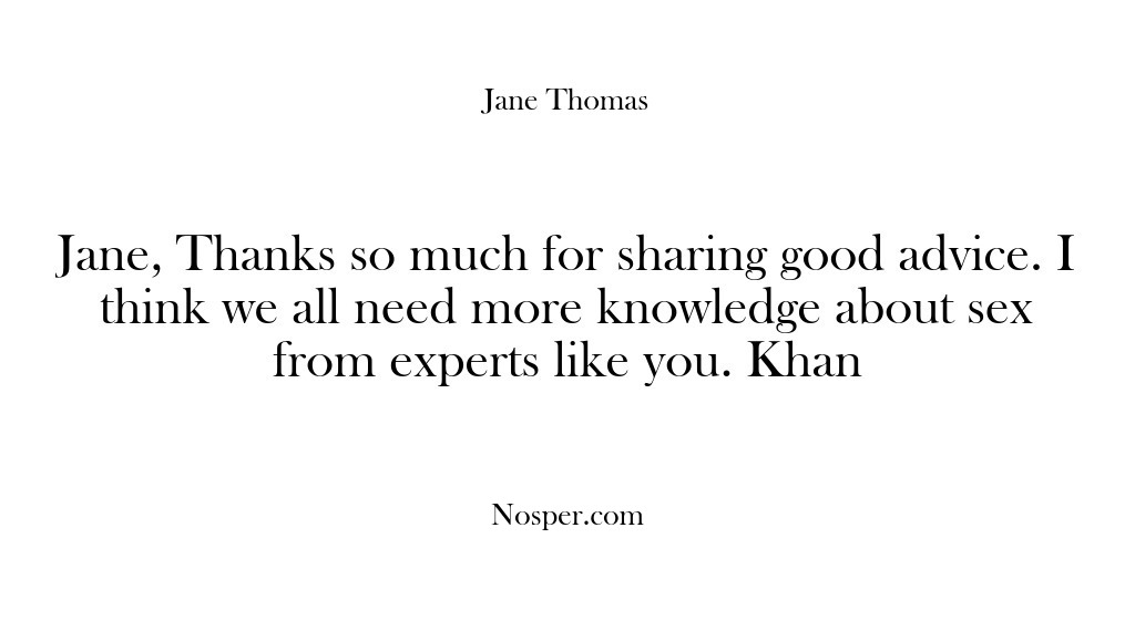 Jane provides constructive sex advice for free because she believes that access to unbiased sex education is a basic human right. She suggests ideas for sex play and helps couples with issues that arise in long-term sexual relationships. Her books are on Amazon.